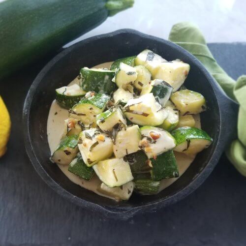 News flash… sometimes I get stuck in a rut when making dinner! It’s a struggle to come up with different side dishes instead of always relying on the same ones. This creamy lemon tarragon zucchini is a different way to use zucchini and makes a nice change.