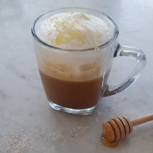 - Top with foamed milk, a sprinkle of sea salt, and a drizzle of honey if desired.